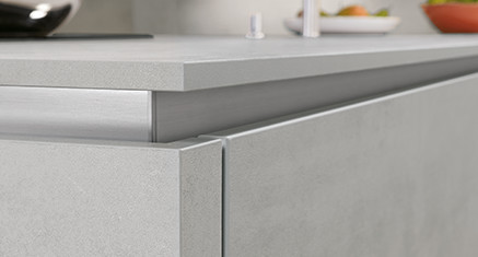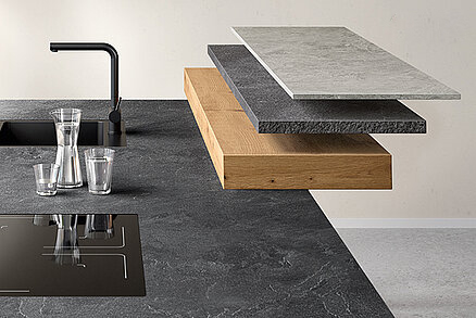 Las encimeras de material de cuarzo convencen con su óptica natural de alta calidad y su aptitud especial de uso. Las ventajas: el material de cuarzo es estanco sin necesidad de impregnación. Las superficies son especialmente fáciles de limpiar e higiénicas. Las condiciones perfectas para planificaciones de cocinas y baños. Las encimeras de material de cuarzo están disponibles en espesores de 12 y 38 mm. El espesor de los revestimientos de hornacinas es de 12 mm. Como con las encimeras Xtra, las placas de cocción con tecnología homologada y los fregaderos integrados pueden instalarse a ras con la superficie.